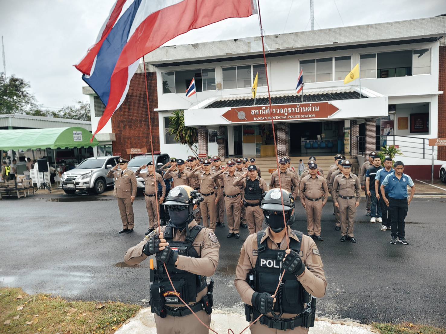 วันที่ 25 มีนาคม 2568 เวลา 08.00 น. พ.ต.อ.อานนท์ เหล็กดี ผกก.สภ.บ้านด่าน นำข้าราชการตำรวจ สภ.บ้านด่าน ที่ปฏิบัติหน้าที่บนสถานี และเจ้าหน้าที่สายตรวจผลัดเข้าและออกปฏิบัติหน้าที่ เคารพธงชาติ สวดมนต์ไหว้พระ กล่าวคำปฏิญาณ