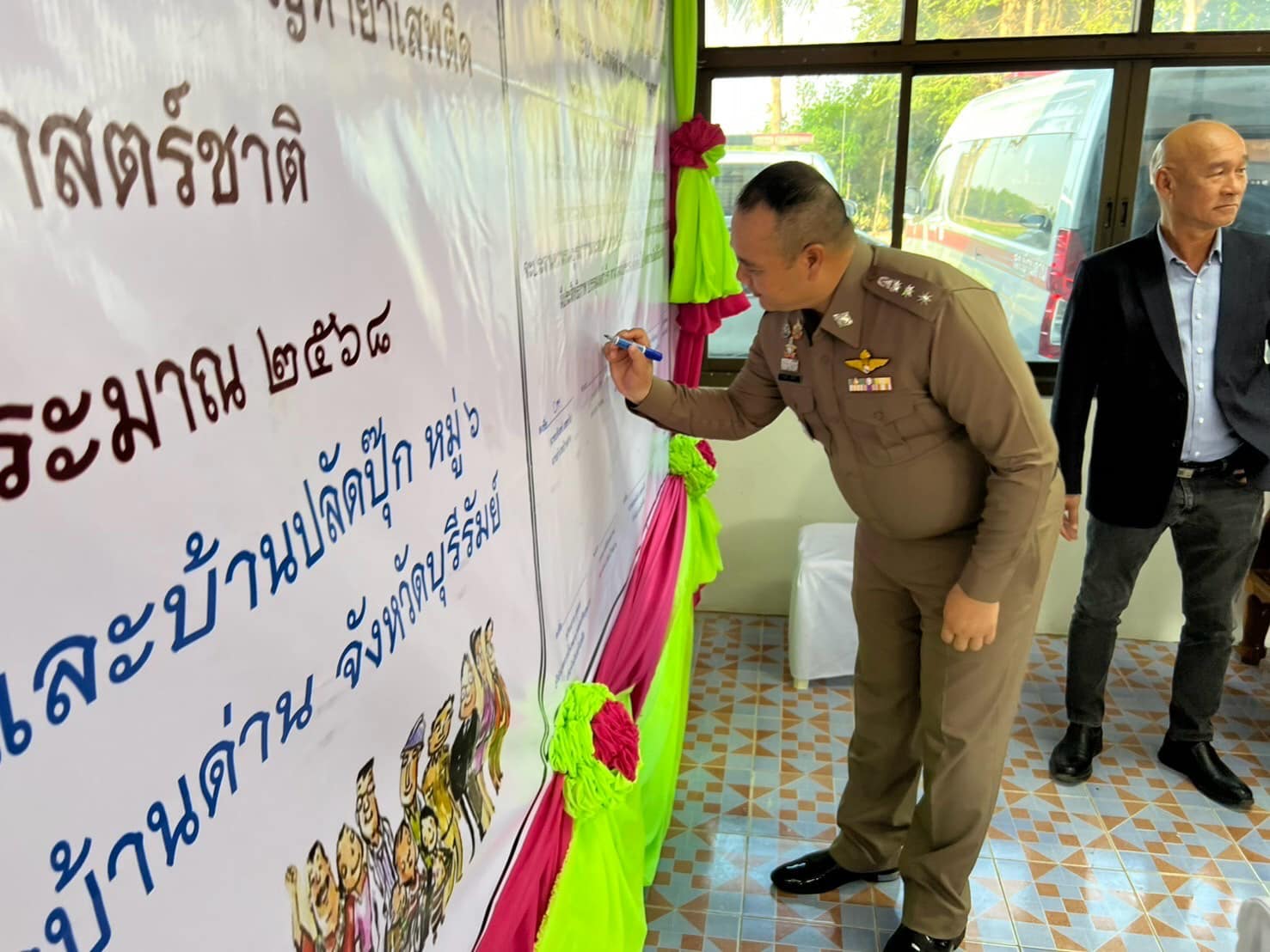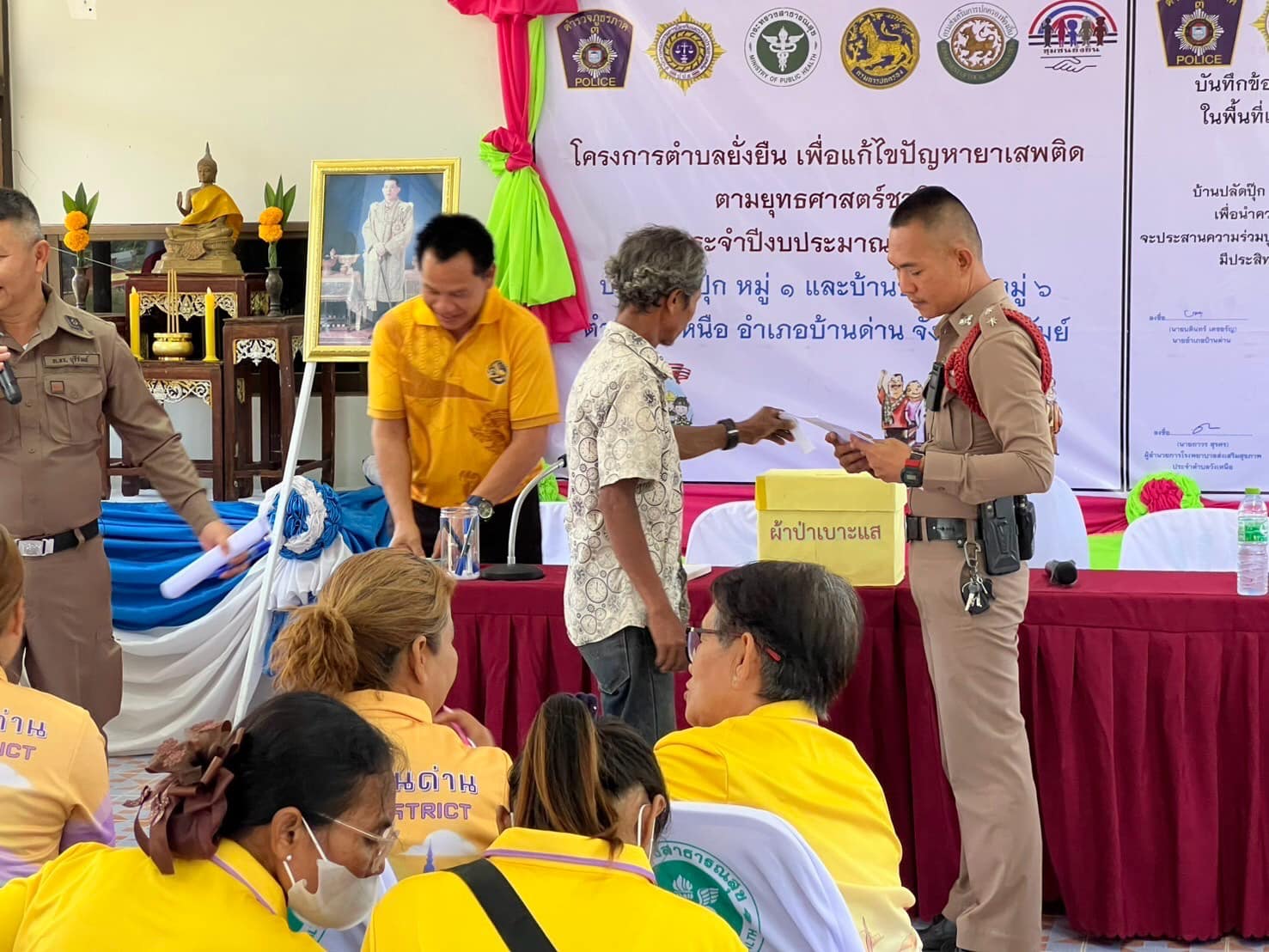 ว่าที่ พ.ต.อ.อานนท์ เหล็กดี ผกก.สภ.บ้านด่าน และข้าราชการตำรวจ สภ.บ้านด่าน พร้อมด้วย นายก อบต.วังเหนือ , จนท.องค์กรปกครองท้องถิ่น, เจ้าหน้าที่สาธารณสุข/ รพ.บ้านด่าน , กำนัน ,ผู้ใหญ่บ้าน ฝ่ายปกครอง และประชาชนหมู่บ้านปลัดปุ๊ก หมู่ที่ 1 และ 6 ต.วังเหนือ อ.บ้านด่าน จว.บุรีรัมย์