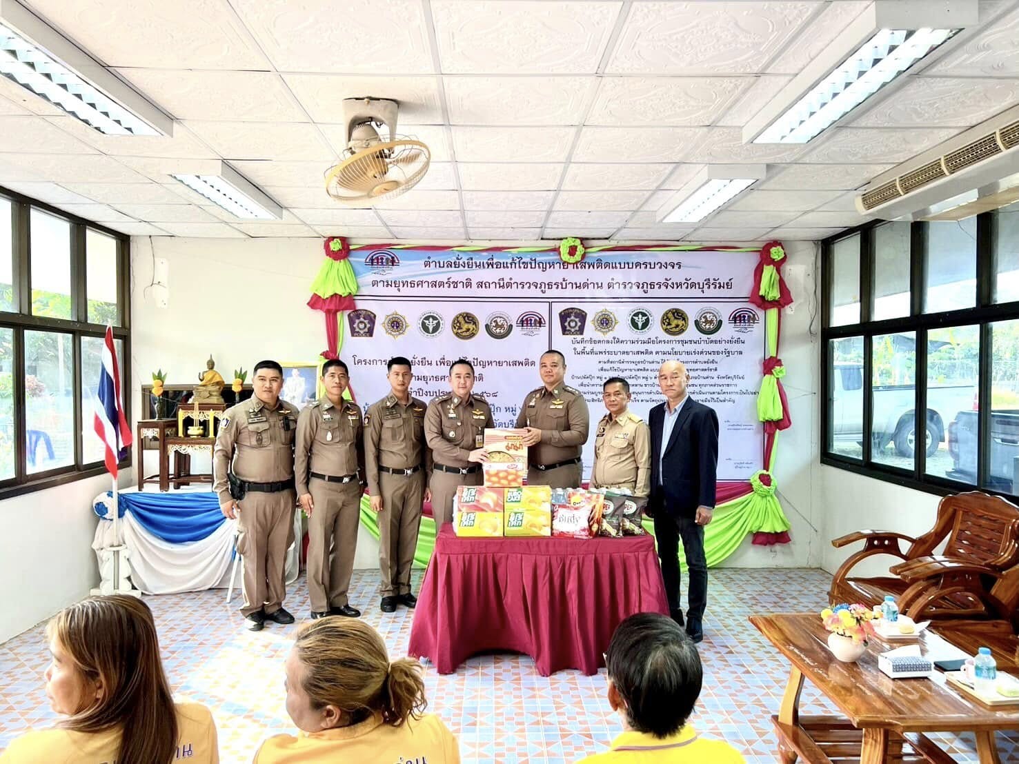 ทั้งนี้ หลังพิธีเปิดโครงการฯ พ.ต.อ.ก้องชาติ เลี้ยงสมทรัพย์ รอง ผบก.ภ.จว.บุรีรัมย์ ได้มอบสิ่งของตรวจเยี่ยม เพื่อเป็นขวัญกำลังใจให้แก่ชุดปฏิบัติการฯ ในการปฏิบัติหน้าต่อไป