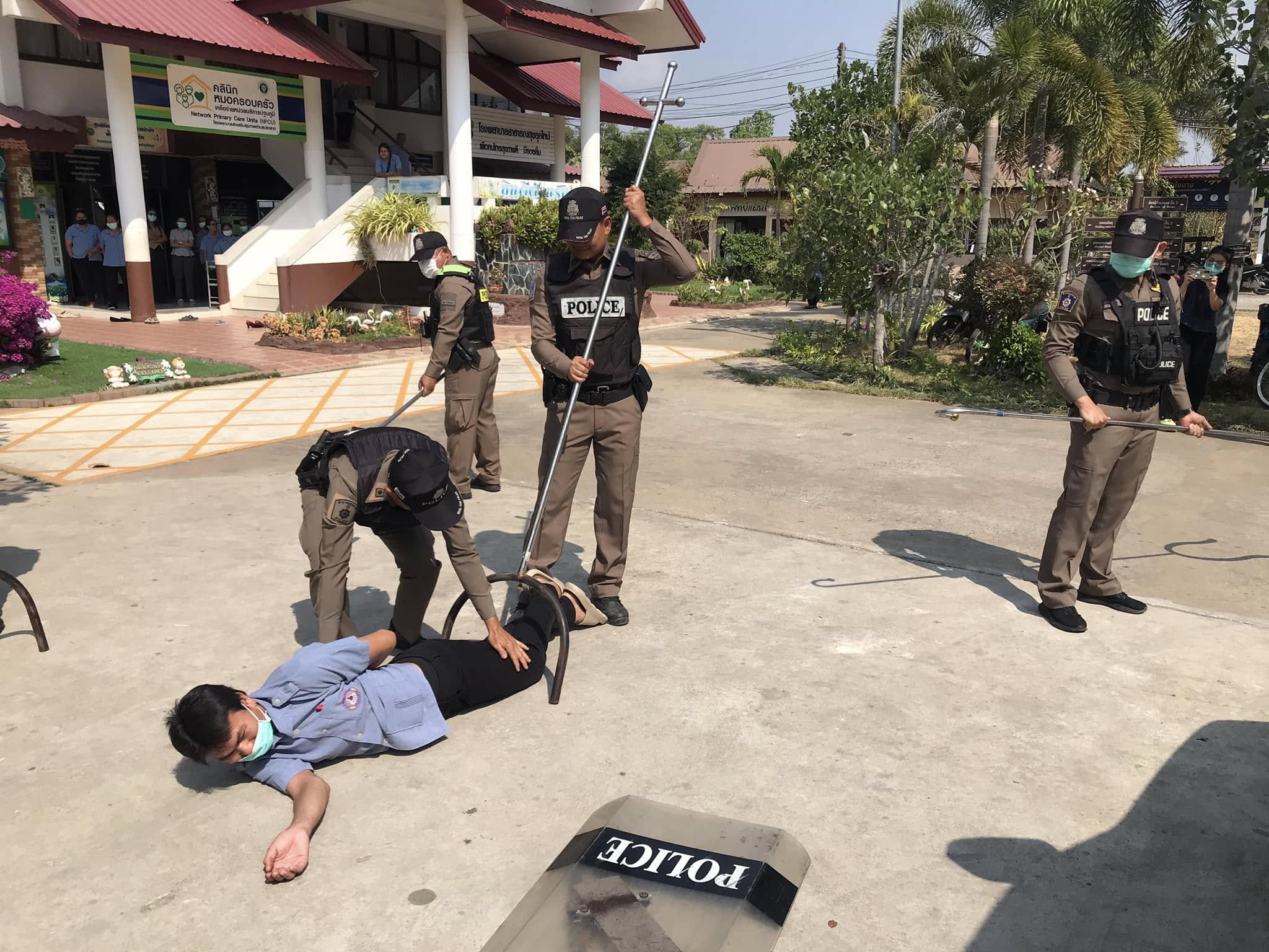 พร้อมด้วยสายตรวจรถยนต์,สายตรวจรถจักรยานยนต์ ร่วมเป็นวิทยากรให้ความรู้ เกี่ยวกับ พรบ.สุขภาพจิต และสาธิตการเข้าระงับเหตุบุคคลคลุ้มคลั่งโดยใช้ยุทธวิธีไม้ง่าม ให้กับ จนท.อสม. ณ ห้องประชุมโรงพยาบาลส่งเสริมสุขภาพตำบลปราสาท อ.บ้านด่าน จ.บุรีรัมย์