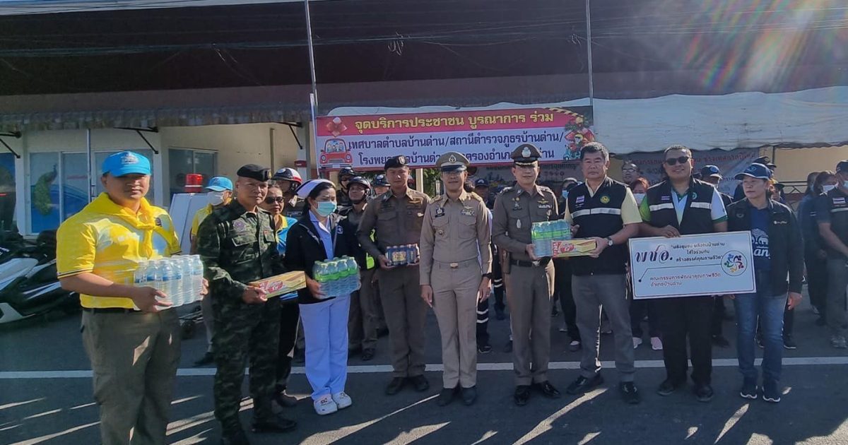 พร้อมข้าราชการตำรวจ สภ.บ้านด่าน ร่วมกับ หัวหน้าส่วนราชการอำเภอบ้านด่าน,โรงพยาบาลบ้านด่าน,สาธารณสุขอำเภอบ้านด่าน,ปลัดอำเภอหัวหน้ากลุ่มงานบริหารงานปกครอง,นายกเทศมนตรีเทศบาลตำบลบ้านด่าน,กำนันตำบลบ้านด่าน,หัวหน้าชุดกู้ชีพ กู้ภัยในพื้นที่,สมาชิก อส.กองร้อย อส.อำเภอบ้านด่าน ร่วมเปิดด่านชุมชน จุดตรวจ/จุดบริการประชาชนในการป้องกันและลดอุบัติเหตุทางถนนในช่วงเทศกาลปีใหม่ พ.ศ.2567 โดยมี นายวรวุฒิ จันทร์สว่าง นายอำเภอบ้านด่าน เป็นประธาน ณ จุดบริการประชาชนบูรณาการร่วมฯ อำเภอบ้านด่าน (บริเวณหน้าศูนย์ OTOP เทศบาลตำบลบ้านด่าน ถนนสตึก-บุรีรัมย์)